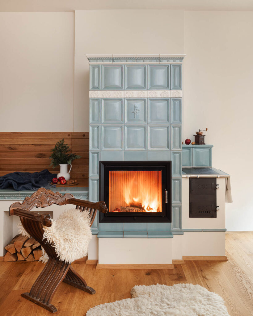 Rodná sestra ikonické Modřenky, multifunkční kachlová kamna, vznikla při renovaci domu na místě původního krbu. Unikátní prostor si sám řekl o výjimečné dílo! Krásný velký oheň, vaření, pečení, ale také velkorysé ležení pro odpočinek po náročném dni.